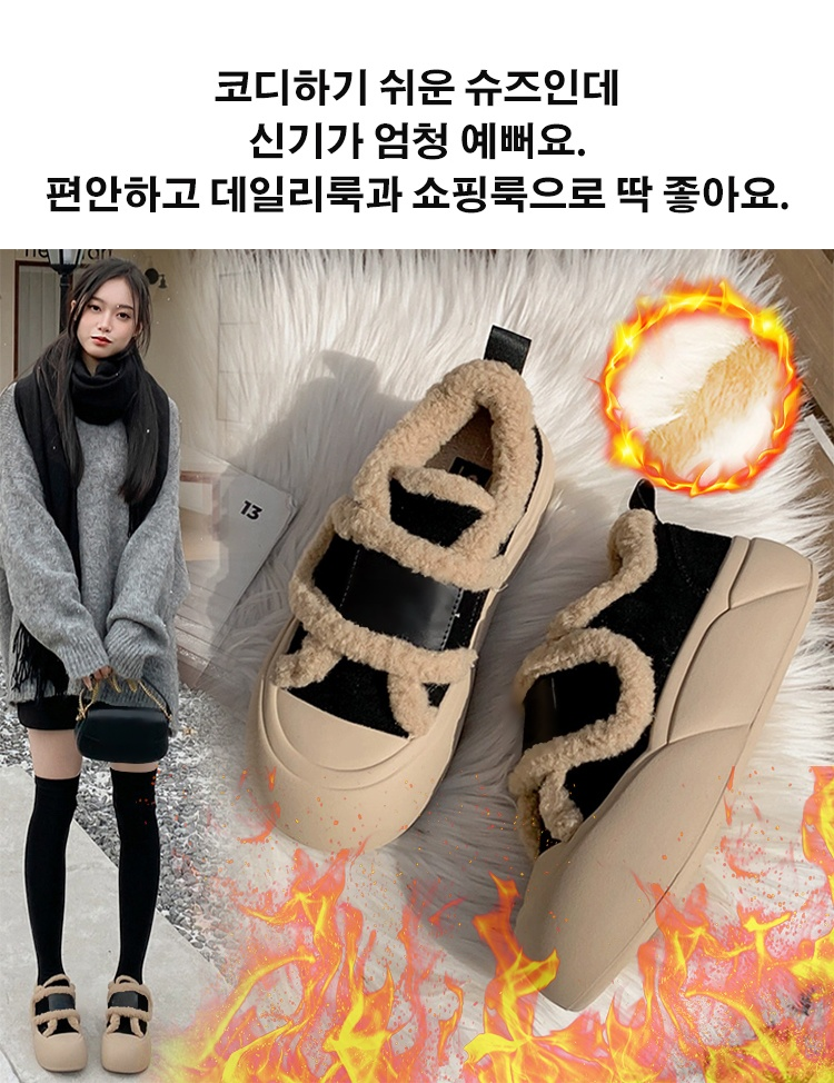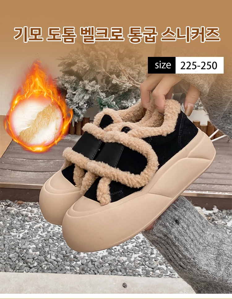 기모 도톰 여성용 벨크로 통굽 스니커즈